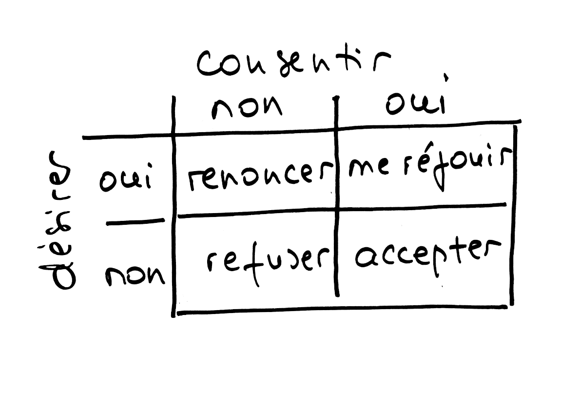C’est faire la distinction entre « je n’ai pas envie » et « je fais le choix de non » ou « j’ai envie » et « je fais le choix de oui ».